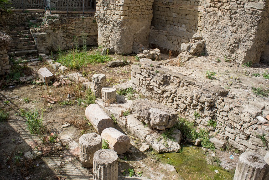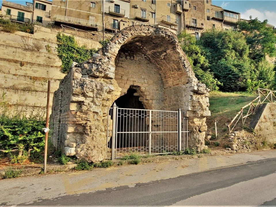 I ruderi sono situati di fronte al Museo Archeologico Regionale, presso la chiesa del Ss. Crocifisso, all’ingresso del paese per chi proviene dalla S.P. 41. Ciò che è possibile vedere dall’esterno è un muro, in filari di pietra squadrata intervallati da laterizi. Il muro è interrotto da un’apertura oggi sbarrata da un cancello. Tramite questo è possibile accedere a due ambienti voltati che un tempo dovevano essere separati e che possiedono delle aperture verso nord, probabilmente perché connessi, un tempo, con il complesso degli Augustales. Vai alla scheda completa.