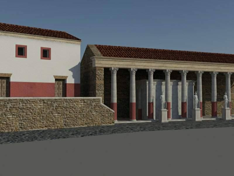 Si tratta di un articolato complesso architettonico che prende il nome “Augustales” dall’iscrizione qui rinvenuta, che reca una dedica del quadrumviro augustale Lucio Calpurnio Aftoneto al Genio Augusto. Si ipotizza che una degli ambienti messi in luce potesse essere sede di un collegio di sacerdoti che avevano il compito di officiare riti in onore del defunto Gaio Giulio Cesare Augusto. A supportare questa ipotesi vi è il pregiato ritratto di Augusto in marmo, scoperto nei pressi di un pilone moderno che regge la strada soprastante.