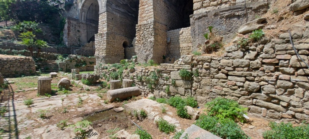 All’ultima fase, III-IV d.C., sono da datare i muretti che suddividono in diversi vani l’ambiente porticato. A Sud di questo complesso monumentale è stata scavata una galleria lunga 120 m. che collegava i due versanti dell’abitato; unica del genere in Sicilia, per motivi di sicurezza non è visitabile.