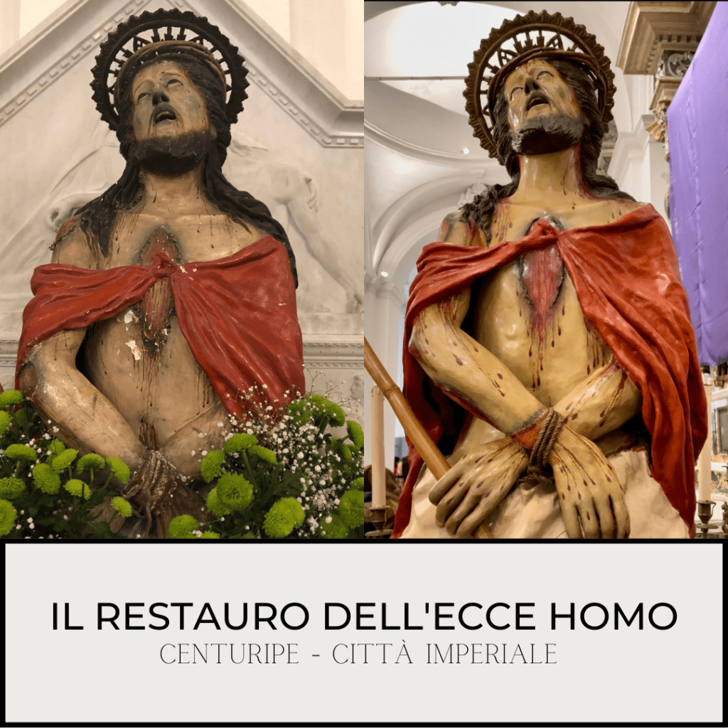 Il 26 aprile 2019, su iniziativa di Salvatore La Spina, allora non ancora sindaco di Centuripe, veniva lanciato un appello: l’Ecce Homo, statua a mezzo busto del Cristo martoriato del XVIII secolo, simbolo del giovedì santo e della processione annessa a Centuripe, aveva bisogno urgente di un restauro per essere preservato, in quanto storia e tradizione del paese. Veniva così lanciata una raccolta fondi per eseguire questa delicata opera di ripristino dell’originale.
