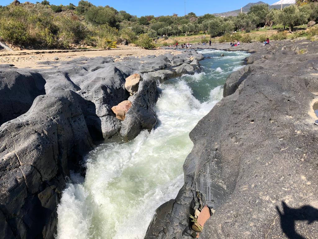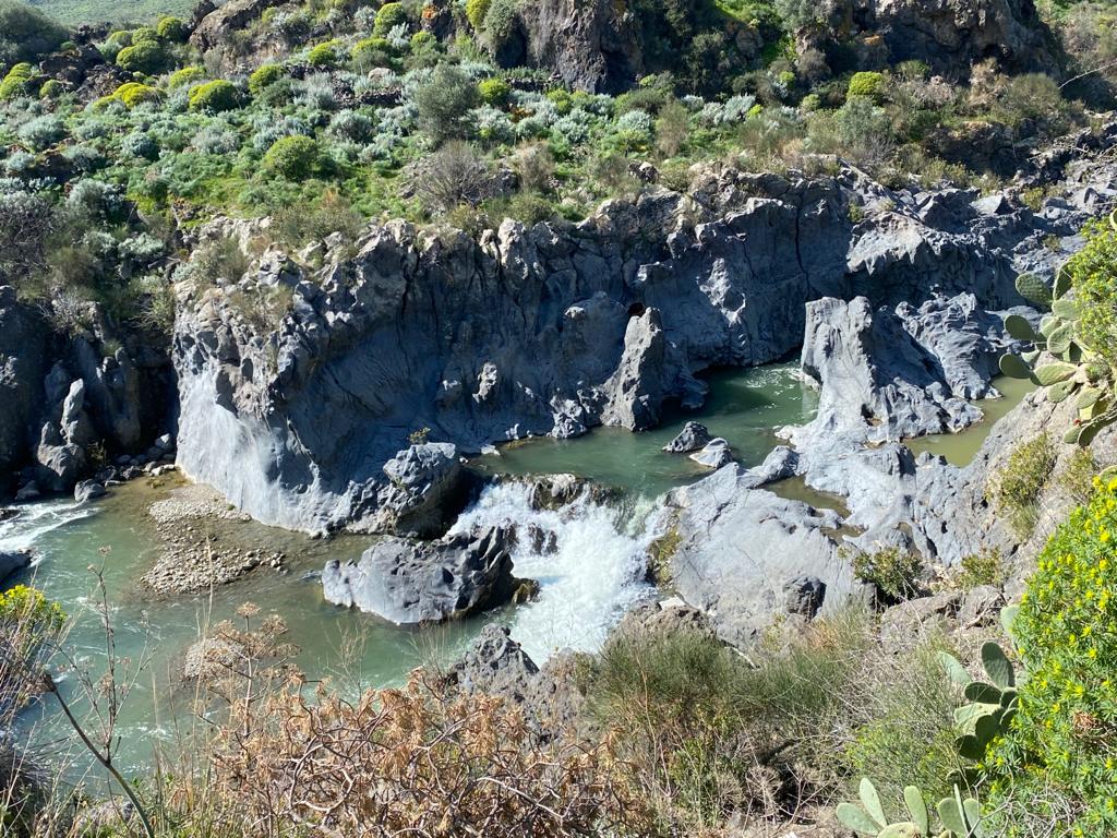 Il fiume precipita per un buon tratto nelle cosiddette “Gole” creando un naturale gioco d’acqua di grande suggestione. La contrada è denominata “Salto del Pecoraio” in omaggio ad una antica leggenda secondo la quale un pastore innamorato saltava dall’una all’altra sponda per recarsi dalla sua amata. Nella limitrofa contrada del Mendolito si trova l’area della più estesa, e forse più evoluta, città ellenica della Sicilia: la Città Sicula del Mendolito, del IX- V sec. a.C.. Di questa città è stata individuata la cinta muraria e messa in luce recentemente la monumentale Porta Sud. Dai ritrovamenti archeologici nella città del Mendolito, possiamo dedurre che nel luogo dove oggi sorge il ponte, già in età neolitica, poteva esistere una struttura, possibilmente un passaggio, costituito da una passerella in legno, per esigenza di commercio e scambi fra le città sorte sulle vie del Simeto, frequentata da numerosi viaggiatori che batterono sempre le stesse vie per poter attraversare il Simeto.