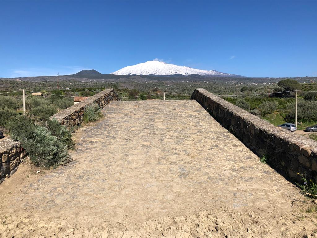 E’ probabile che durante la dominazione romana sull’isola, si ritenne opportuno sostituire, con una solida architettura in pietra, il vecchio passaggio siculo-greco sul Simeto. Nasceva così una delle “viae frumentariae” che servivano a trasportare le considerevoli derrate frumentarie dalla Sicilia centro-orientale, ai porti della costa ionica, per l’uso e l’alimentazione degli abitanti della capitale. Quindi il ponte faceva parte di un’antichissima strada, che dalla Sicilia nord-orientale, lungo il corso dei fiumi Alcantara e Simeto, portava alla piana di Catania, con diramazioni per Regalbuto, Troina, Agira, Centuripe, Adernò, Paternò, Catania e Lentini.