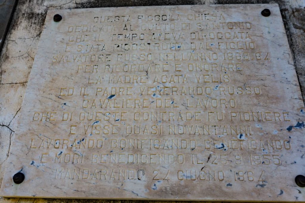 Percorrendo la strada provinciale 82, guardando l’Etna, si possono scorgere una stazione dismessa, l’ex stazione ferroviaria di Mandarano e, retrostante ad essa, i resti di abitazioni, uffici e locali di un’antica azienda agricola. L’elemento che si distingue maggiormente è senza dubbio la chiesetta sconsacrata dedicata al culto di Sant’Antonio, una costruzione semplice, umile, ideale per le esigenze di un piccolo sobborgo. Su di essa un’iscrizione che ne attribuisce la ricostruzione sulla stessa al figlio di Agata Velis e del cavaliere del lavoro Venerando Russo.