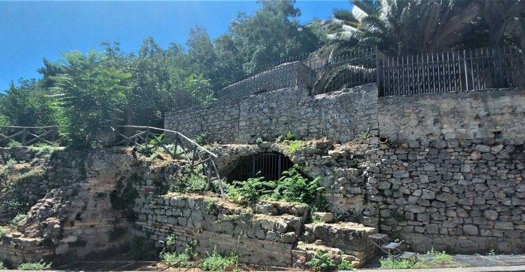 I ruderi sono situati di fronte al Museo Archeologico Regionale, presso la chiesa del Ss. Crocifisso, all’ingresso del paese per chi proviene dalla S.P. 41. Ciò che è possibile vedere dall’esterno è un muro, in filari di pietra squadrata intervallati da laterizi. Il muro è interrotto da un’apertura oggi sbarrata da un cancello. Tramite questo è possibile accedere a due ambienti voltati che un tempo dovevano essere separati e che possiedono delle aperture verso nord, probabilmente perché connessi, un tempo, con il complesso degli Augustales.
