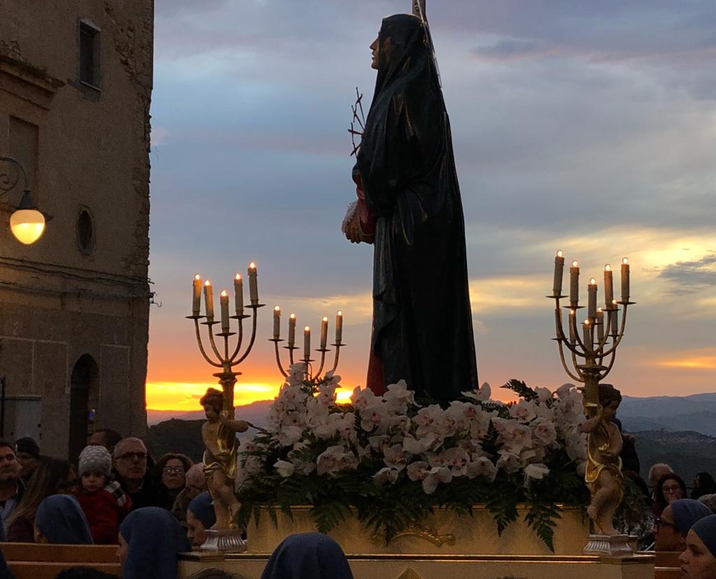 La settimana santa rappresenta uno dei momenti più unici e sentiti della comunità. Le processioni del giovedì e venerdì Santo, con i simulacri trasportati in giro per il paese e “a cascata da tiledda” (la caduta di una tela antichissima che rivela il Cristo Risorto), rappresentano occasioni di grande fervore emotivo per i partecipanti.